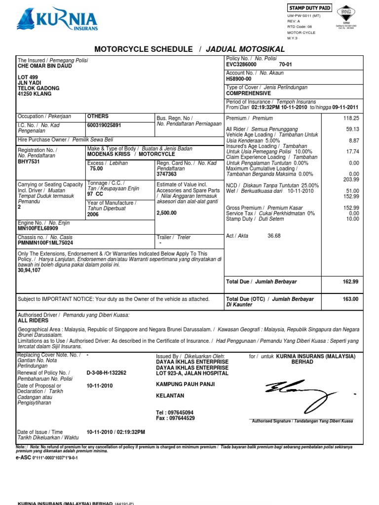 Kurnia Insurans Tawau Kurnia Motor Car Insurance Road Tax Online Malaysia Amgeneral Insurance Berhad Hereinafter Called The Company Agree Provisions Oldenhofcarinnas